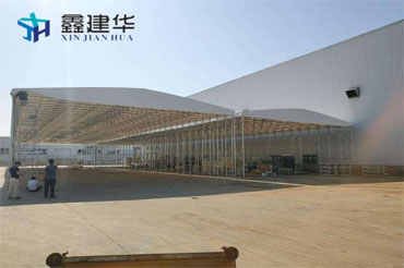 鑫建华公司直销推拉雨棚,构造简单,骨架结构采用镀锌钢材,结实耐用,抗风等级达到7~8级,高强度的骨架,布料采用PVC阻燃布、汽车帆布,具有防水、防晒。防辐射、防风、遮阳,配用实心万向尼龙轮,使用起来灵活方便,产品的尺寸可以根据顾客的需求来定制,雨棚使用寿命长达10年。可